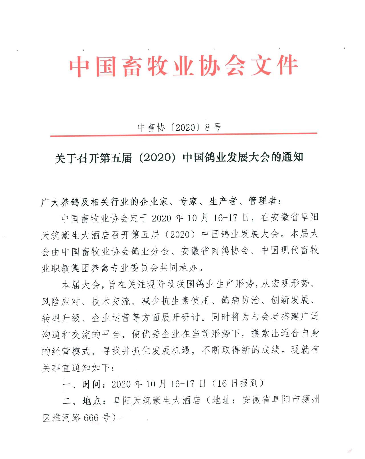 關(guān)于召開第五屆(2020)中國鴿業(yè)發(fā)展大會(huì)的通知.doc