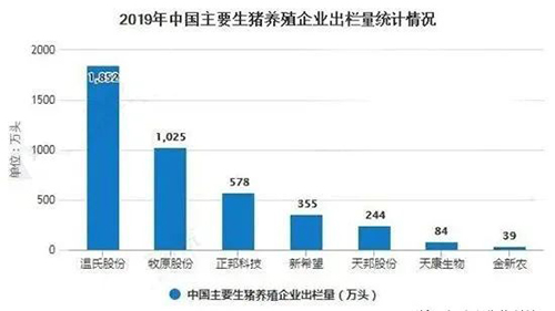 2019年我國(guó)主要生豬養(yǎng)殖企業(yè)中,溫氏股份和牧原股份的生豬出欄量排在前列,出欄量分別為1852萬(wàn)頭和1025萬(wàn)頭。正邦科技、新希望股份和天邦股份生豬出欄量均小于1000萬(wàn)頭。