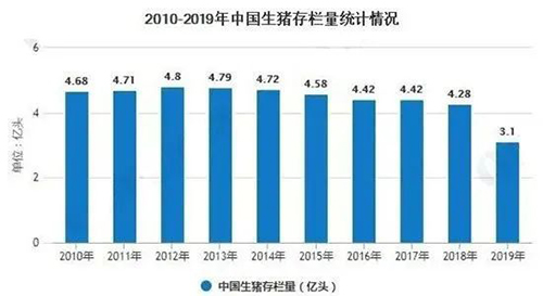 受環(huán)保政策和行業(yè)周期性和波動(dòng)性因素的影響,我國(guó)生豬存欄量近年來(lái)呈下降趨勢(shì)。2012年我國(guó)生豬存欄量有4.8億頭,至2019年下降至3.10億頭。