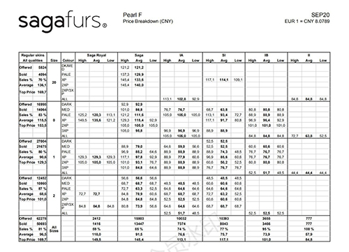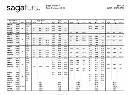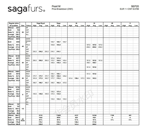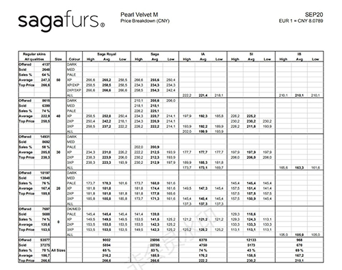 ?總的來說,所有供應皮張幾乎全部售出。主要買家來自中國,同時也得到了俄羅斯買家的大力支持。與歐洲最近的水平相比,10.5萬張珍珠公皮以100%的銷售率售出。