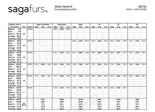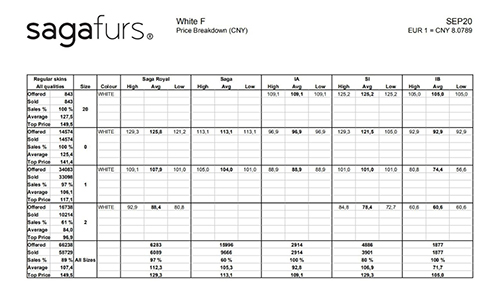歐洲白色母貂皮售出了30%,而北美的白色母貂皮則遇到了較大的銷售阻力。