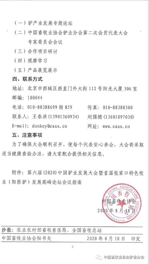 關(guān)于召開第六屆(2020)中國驢業(yè)發(fā)展大會(huì)暨首屆張家口特色牧業(yè)(陽原驢)發(fā)展高峰論壇的通知