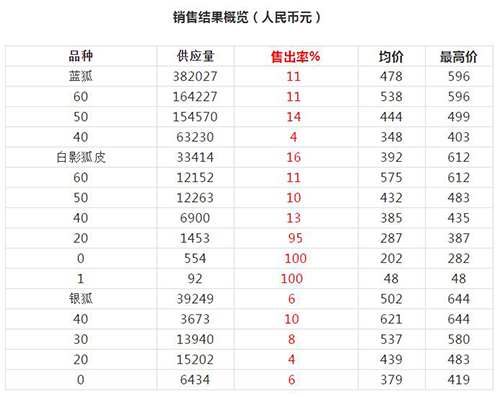 芬蘭9月拍賣會(huì)藍(lán)狐、白狐、銀狐皮銷售結(jié)果