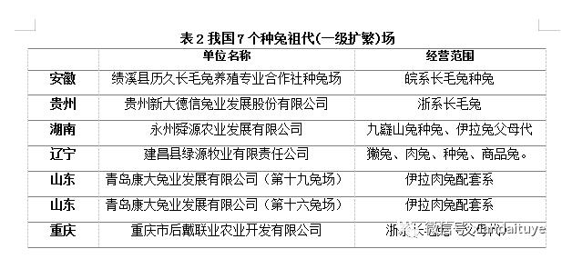 除曾祖代場以外,祖代場在種兔育種和推廣中也發(fā)揮著重要作用。2018年我國共有種兔祖代場(一級擴繁)7個(表2),主要分布在山東(2個),另外安徽、貴州、湖南、遼寧和重慶各1個。