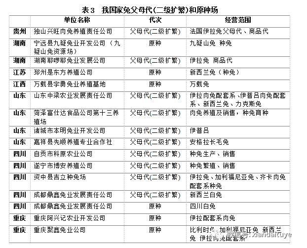 四川和山東是我國家兔的主產(chǎn)地,兔業(yè)發(fā)展起步早,建立了較為完善的良種繁育體系。截止到2018年底,四川有父母代(二級擴繁)4個,原種場1個。山東有父母代(二級擴繁)場4個(表3)。
