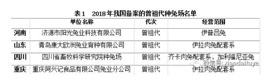 從育種方式來看,各地的育種主要還是采用家系選育、群體選育方法。在繁殖上采用自然交配和人工受精技術(shù)結(jié)合等,但隨著規(guī)模化發(fā)展,人工授精的比例在不斷提高。根據(jù)農(nóng)業(yè)部畜牧業(yè)司公布的我國種兔場備案的情況,2018年我國共有備案的曾祖代種兔場4個,分別分布在山東、河南、重慶和四川(表1)。