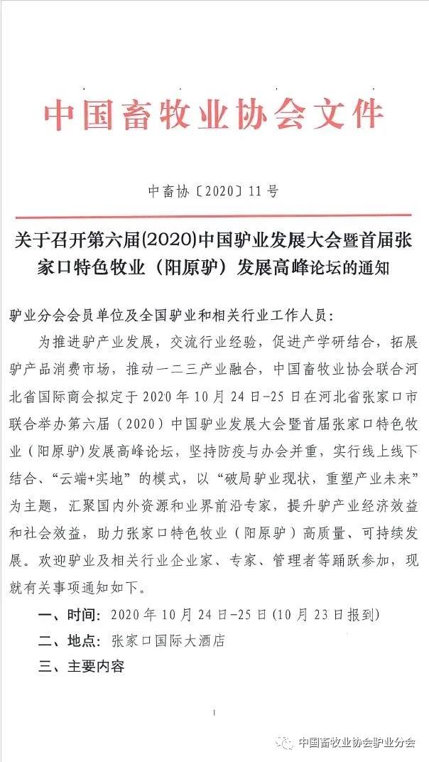 關于召開第六屆(2020)中國驢業(yè)發(fā)展大會暨首屆張家口特色牧業(yè)(陽原驢)發(fā)展高峰論壇的通知
