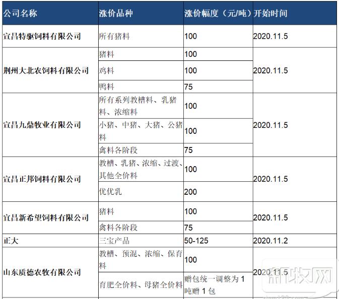 近20家飼企宣布漲價,11月第2波飼料漲價潮來襲