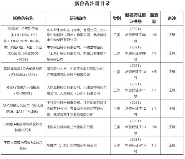 農(nóng)業(yè)農(nóng)村部批準(zhǔn)7種獸藥產(chǎn)品為新獸藥