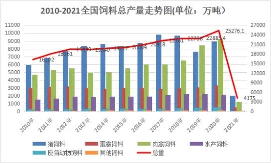 圖1: 2020-2021全國(guó)飼料總產(chǎn)量走勢(shì)圖(數(shù)據(jù)來(lái)源:中國(guó)飼料工業(yè)協(xié)會(huì))