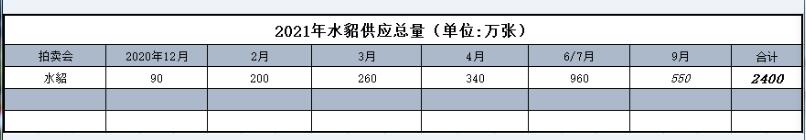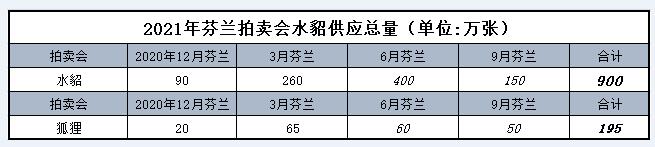 2021拍賣會水貂供應(yīng)量數(shù)值預(yù)估(按日程先后排列)