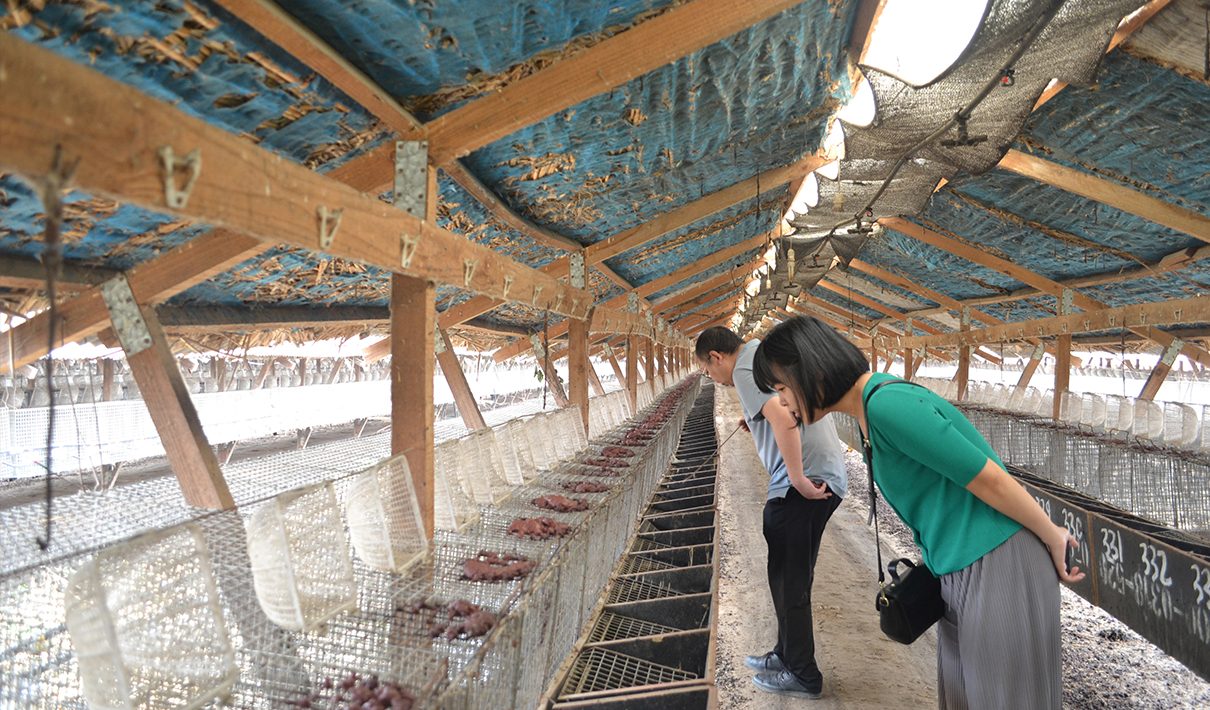 九洲皮毛研究所所長(zhǎng)呂忠文老師陪同秘書處成員參觀了水貂養(yǎng)殖場(chǎng)。呂忠文老師介紹,由于市場(chǎng)行情的影響,今年水貂養(yǎng)殖量大幅度縮減,目前養(yǎng)殖場(chǎng)以咖啡色貂和銀藍(lán)水貂為主,存欄量大約10000只,其中種貂有2000只左右。在參觀過程中可以看到,養(yǎng)殖場(chǎng)的環(huán)境衛(wèi)生和水貂夏季的防暑降溫工作做得很好,從而大大降低了疫病的發(fā)生率。