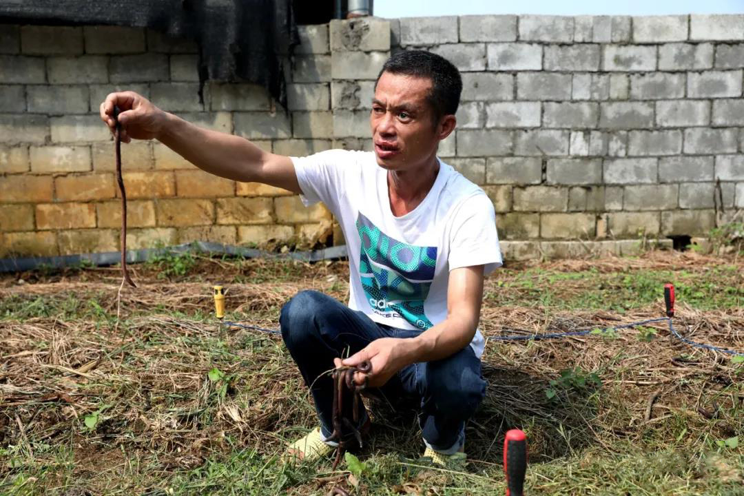 除了可以發(fā)展循環(huán)農業(yè),蚯蚓的經(jīng)濟價值也非常大。張發(fā)介紹,蚯蚓是一種富含高蛋白、各種礦物質以及多種微量元素的動物,還是一味非常重要的中藥“地龍”,含有多種藥用成分,產出的蚯蚓根本不愁銷路;蚯蚓養(yǎng)殖只需一次性投苗,以后就靠種苗自身繁殖來擴大養(yǎng)殖規(guī)模,便于日常的管理,成本也低。說著,張發(fā)便扒開蚯蚓地上的秸稈,拿起一條邊展示邊介紹。