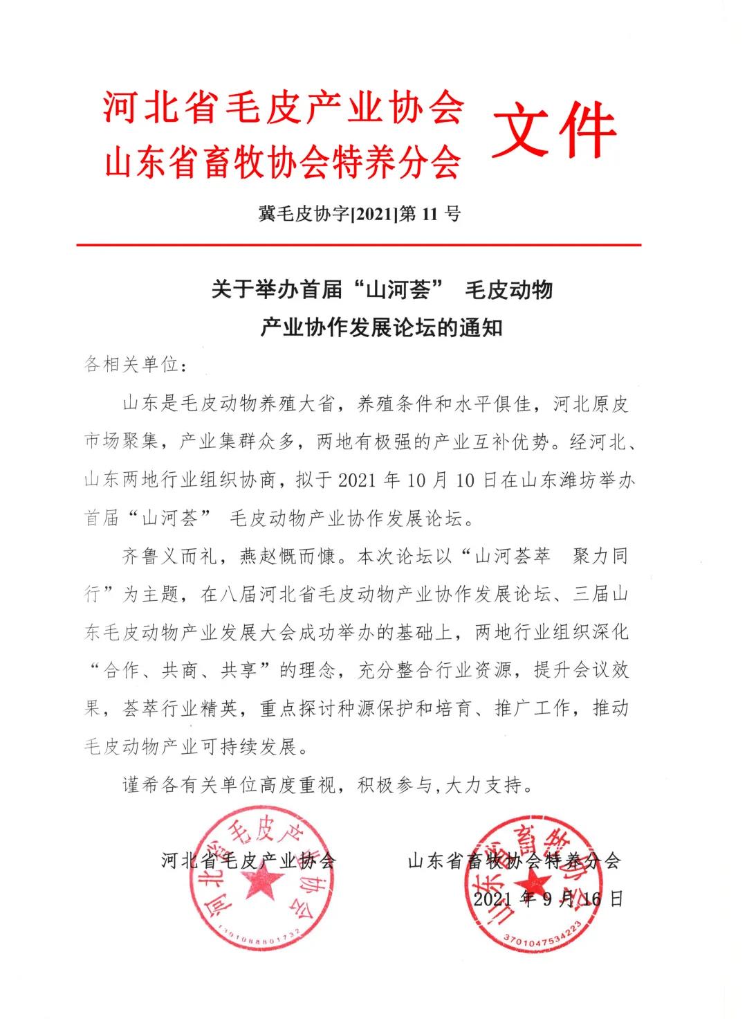 關(guān)于舉辦首屆“山河薈” 毛皮動(dòng)物產(chǎn)業(yè)協(xié)作發(fā)展論壇的通知