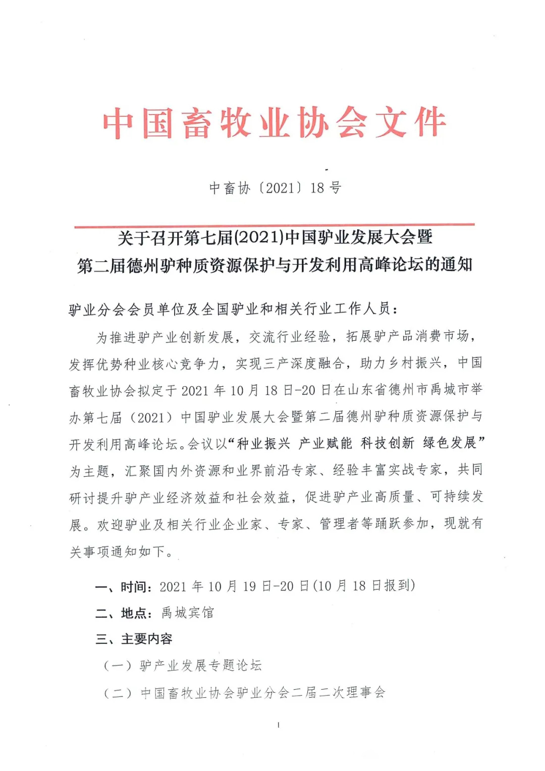 關(guān)于召開(kāi)第七屆(2021)中國(guó)驢業(yè)發(fā)展大會(huì)的通知