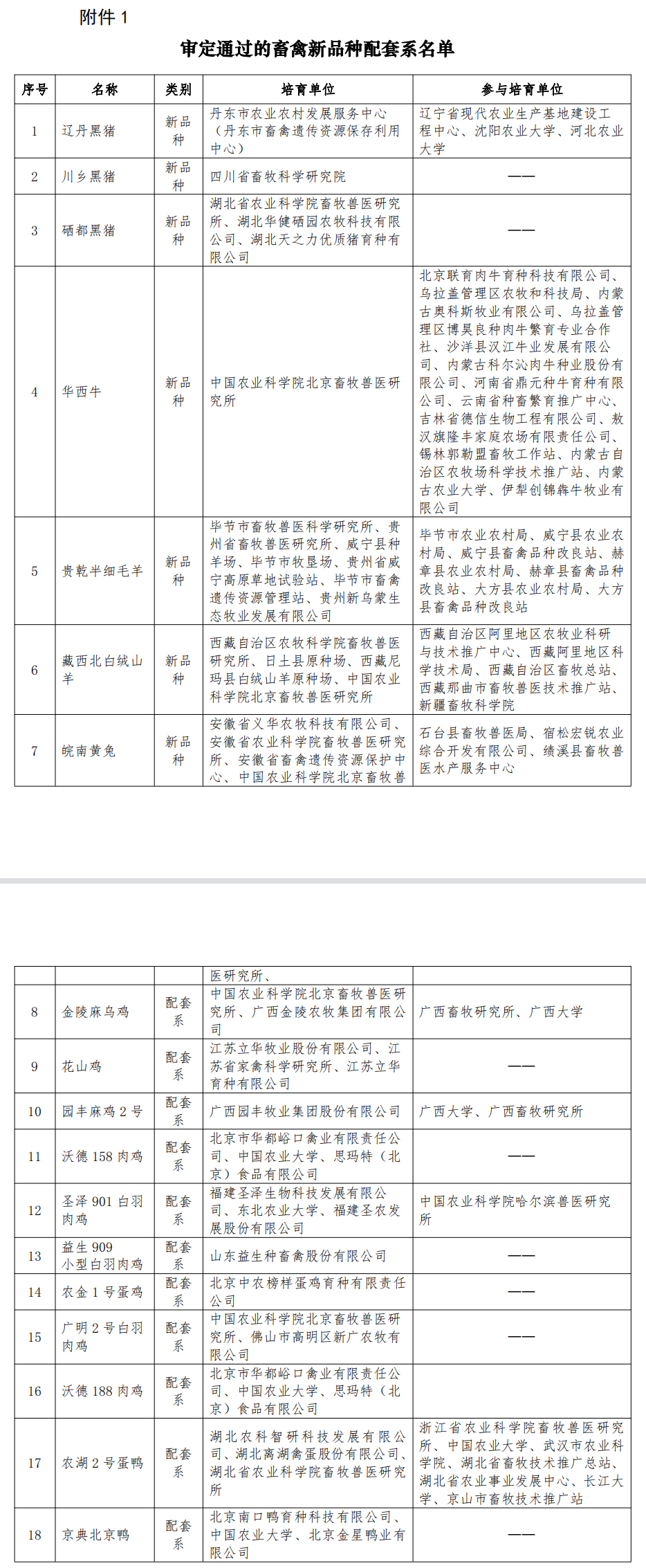 附件:1.審定通過(guò)的畜禽新品種配套系名單