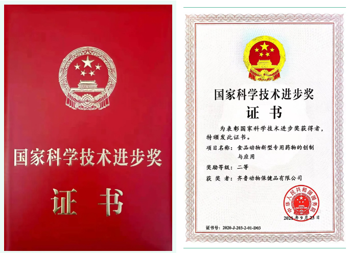 2020年度國家科學(xué)技術(shù)獎勵大會于2021年11月3日上午在人民大會堂舉行。齊魯動物保健品有限公司“食品動物新型專用藥物的創(chuàng)制與應(yīng)用”、“奶牛高發(fā)病系列新獸藥創(chuàng)制與應(yīng)用”兩個項目獲得兩項國家科學(xué)技術(shù)進(jìn)步二等獎。
