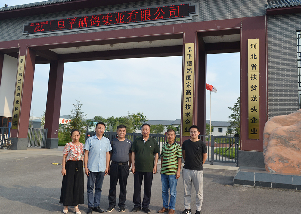 2021年7月25日,中國畜牧業(yè)協(xié)會鴿業(yè)分會會長陳益填,河北省毛皮產(chǎn)業(yè)協(xié)會執(zhí)行會長、特種養(yǎng)殖信息網(wǎng)總監(jiān)靳國慶一行來到位于河北保定的阜平硒鴿實業(yè)有限公司,調(diào)研種源培育和種源基地建設(shè)情況。阜平硒鴿實業(yè)有限公司董事長劉福才陪同大家參觀了硒鴿產(chǎn)品展示廳、原種鴿舍和孵化室。靳國慶談到,野谷集團(tuán)在原種、曾祖代、祖代種源的培育和選育上,下足了功夫,做足了功課,為我國肉鴿產(chǎn)業(yè)的發(fā)展做出了巨大貢獻(xiàn)。大家就目前各地肉鴿的生產(chǎn)性能和當(dāng)前終端產(chǎn)品的市場情況進(jìn)行深入探討。