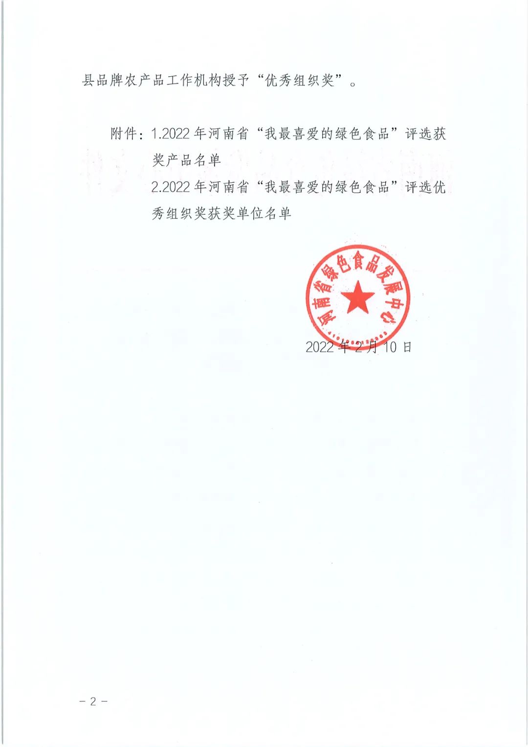 2022年河南省“我最喜愛的綠色食品”評(píng)選獲獎(jiǎng)產(chǎn)品