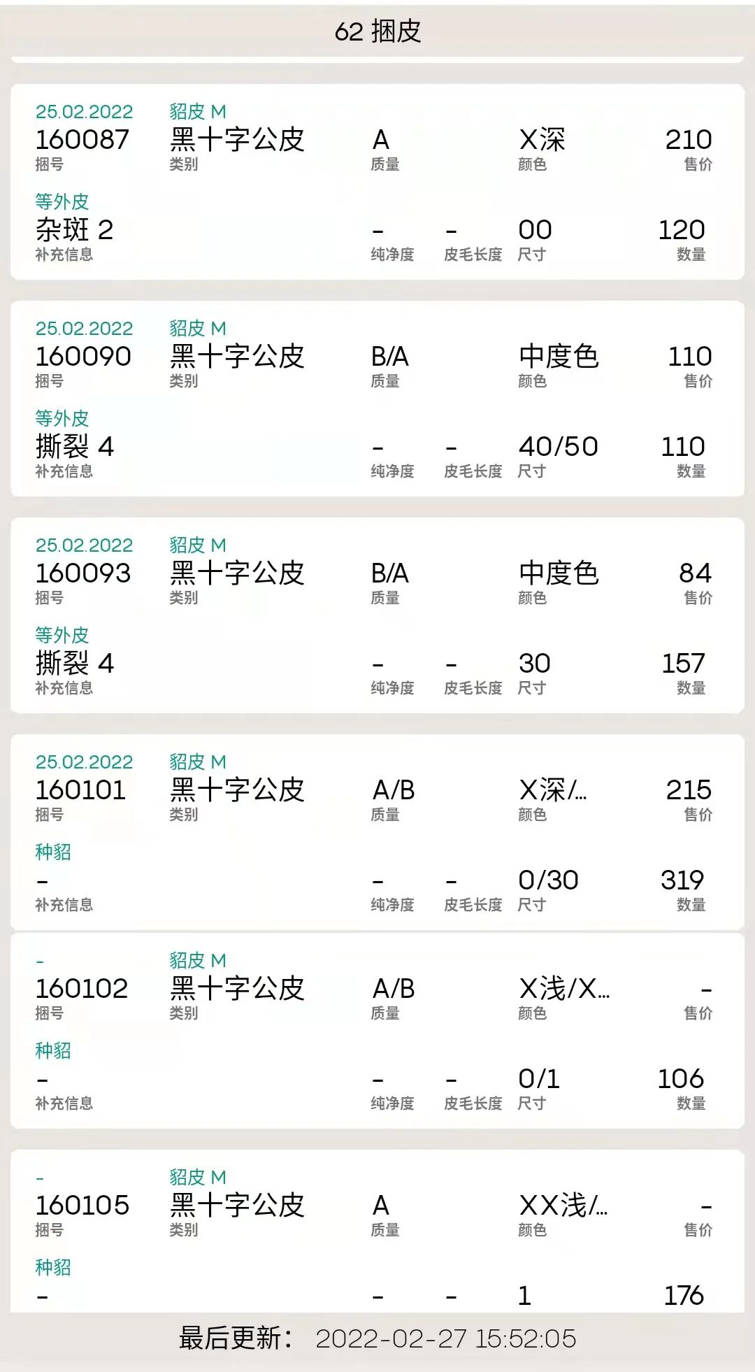 5、黑十字公貂62捆,總量9800多張,售出4捆。