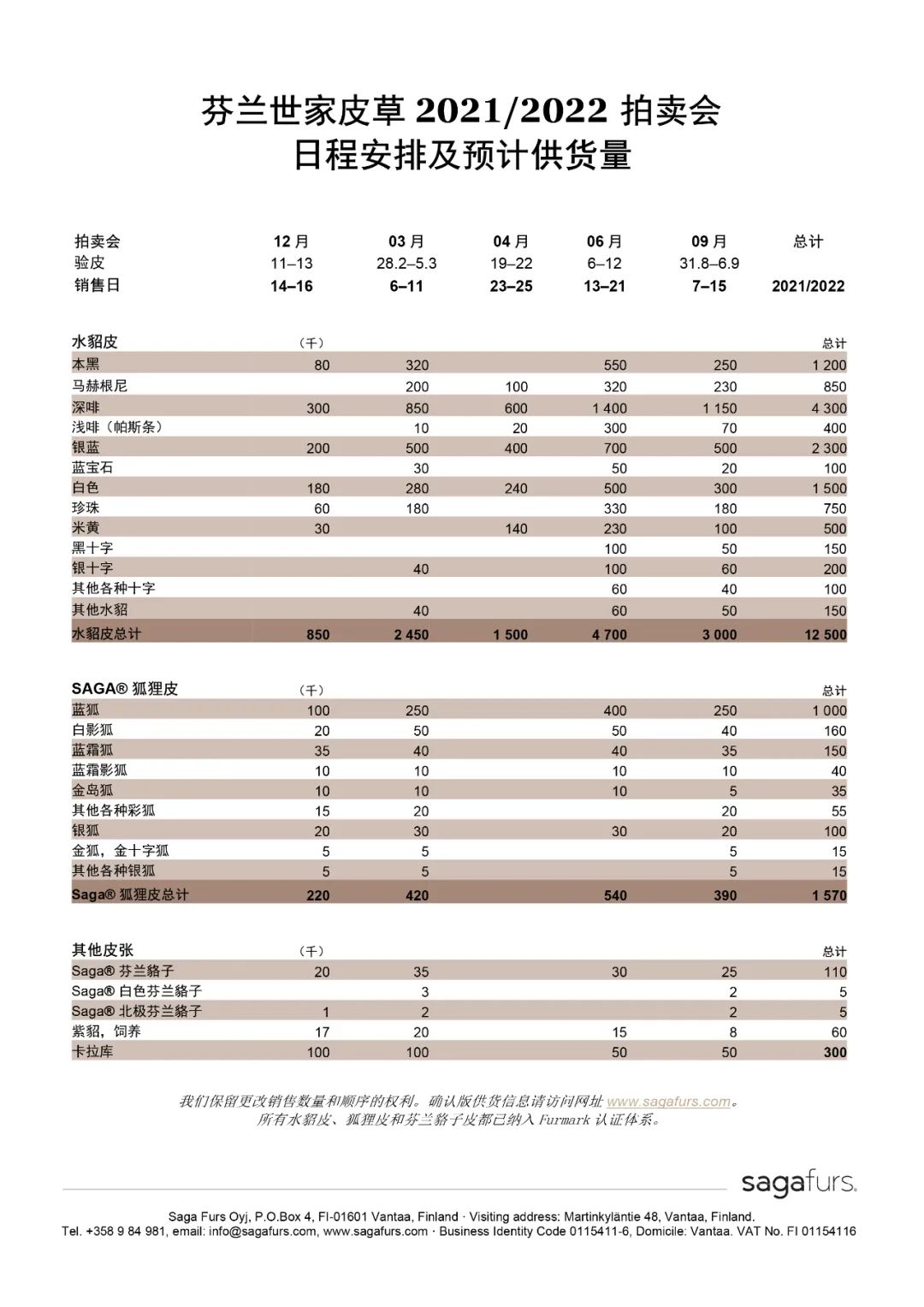 調(diào)整后的銷售日期為4月25日至27日,驗皮日期從4月21日開始。更多關(guān)于拍賣會供貨量和預(yù)計銷售程序的信息將于下周公布。