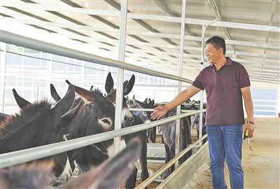 南嵐新村村民王建國就是首批簽約的農(nóng)戶之一。“以前我種玉米,一年到頭扣除種子、化肥、農(nóng)藥錢,也就賺1萬多元,還得看天吃飯。”王建國說,“今年3月,我從姜紹榮的農(nóng)場拿了10頭幼驢,把家里閑置的老院子改成了簡易驢舍,他還派技術(shù)員教我怎么喂、怎么防疫,現(xiàn)在驢都長到300多公斤了,再過兩個(gè)月就能出欄,按保底價(jià)算,能賺3萬多元!”