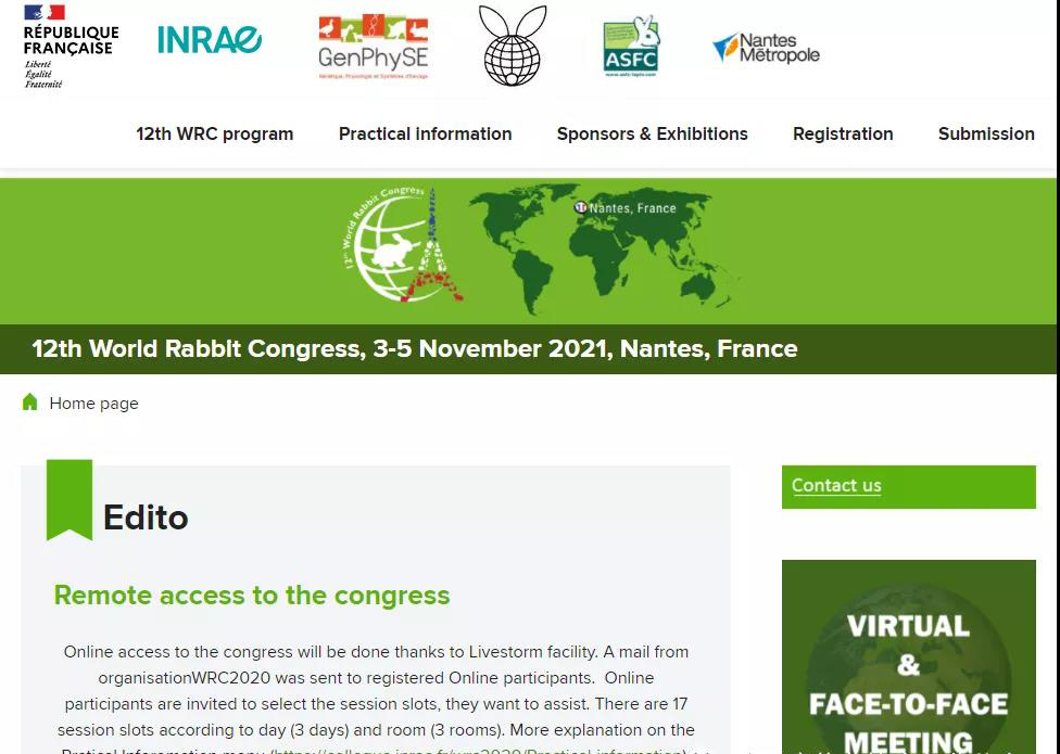 近日,第十二屆世界家兔科學(xué)大會(huì)(12th World Rabbit Congress)在法國南特市召開,此次會(huì)議由世界家兔科學(xué)學(xué)會(huì)(World Rabbit Science Association,WRSA)、法國農(nóng)業(yè)食品與環(huán)
