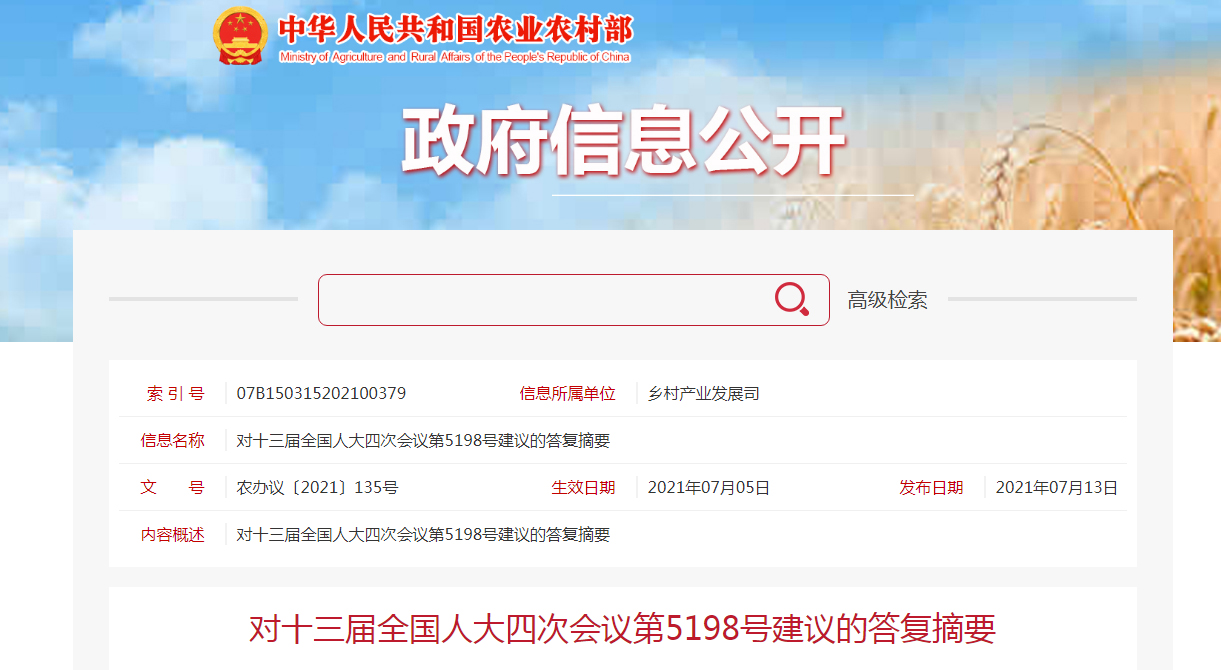 在十三屆全國人大四次會議上,徐淙祥代表提出了關于加強綠色生態(tài)循環(huán)農(nóng)業(yè)產(chǎn)業(yè)化發(fā)展的建議(第5198號建議)。農(nóng)業(yè)農(nóng)村部作出如下答復?! ∫?、關于強化綠色生態(tài)循環(huán)發(fā)