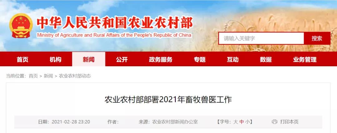 2月25日,農(nóng)業(yè)農(nóng)村部召開畜牧獸醫(yī)工作部署會。會議強調(diào),要按照“保供固安全、振興暢循環(huán)”的“三農(nóng)”工作定位,明確工作任務(wù),落實責任分工,統(tǒng)一認識、統(tǒng)