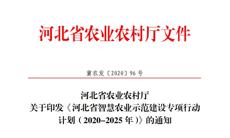 省農(nóng)業(yè)農(nóng)村廳日前印發(fā)《河北省智慧農(nóng)業(yè)示范建設(shè)專項(xiàng)行動(dòng)計(jì)劃(2020—2025年)》。行動(dòng)計(jì)劃提出,緊緊圍繞實(shí)施鄉(xiāng)村振興戰(zhàn)略,加快推進(jìn)物聯(lián)網(wǎng)、人工智能、大數(shù)據(jù)、區(qū)塊