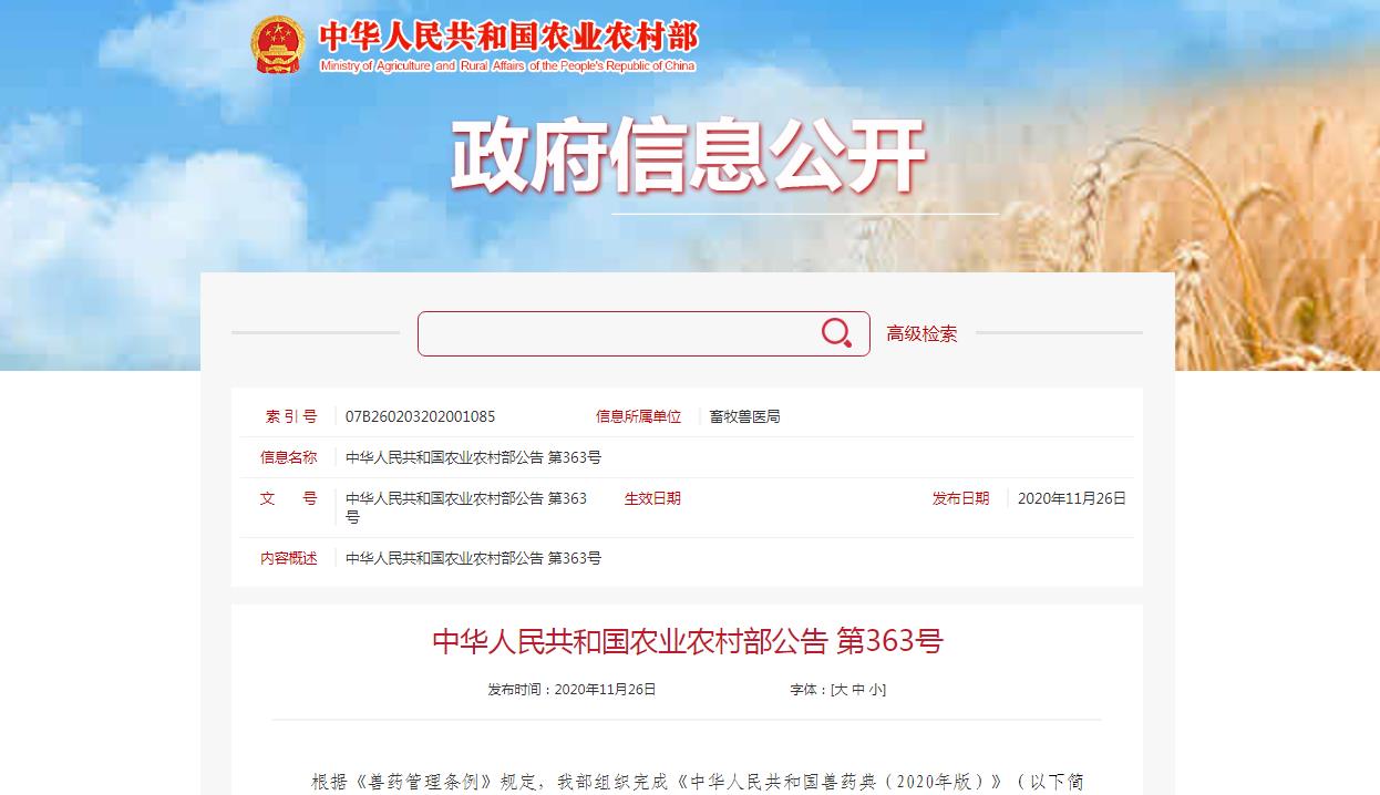 根據(jù)《獸藥管理?xiàng)l例》規(guī)定,我部組織完成《中華人民共和國(guó)獸藥典(2020年版)》(以下簡(jiǎn)稱《中國(guó)獸藥典(2020年版)》)一部、二部、三部的編制工作,并制定了配套的說(shuō)明書(shū)范