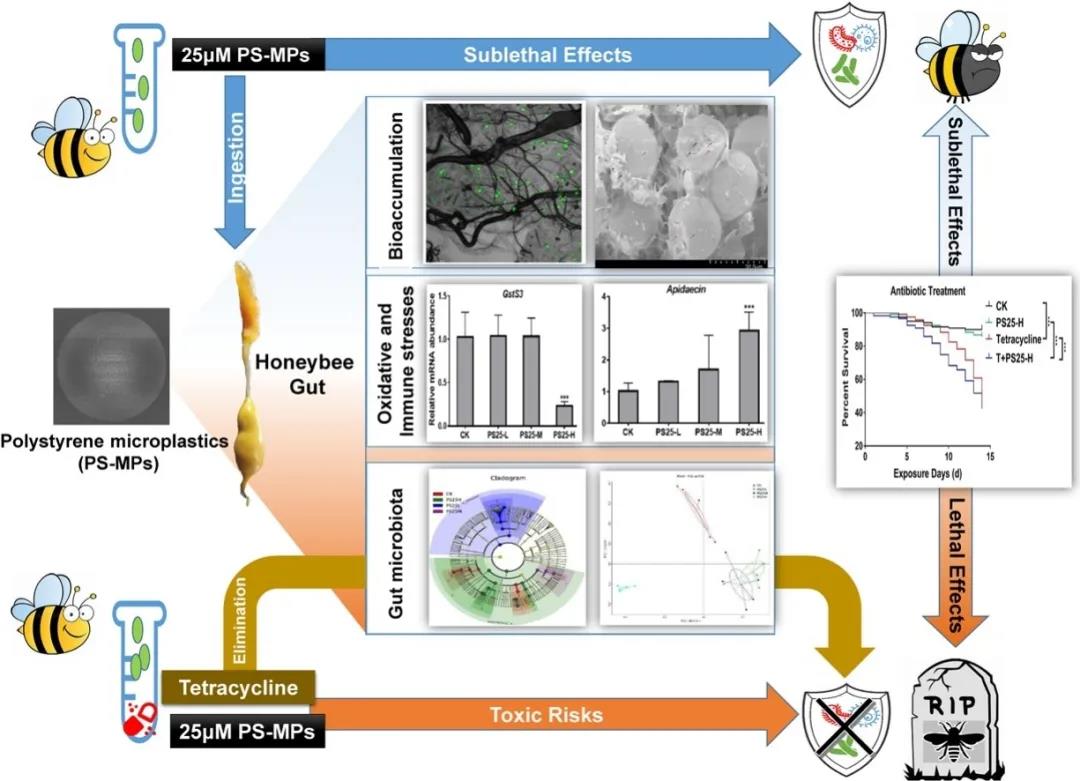 近日,中國農(nóng)業(yè)科學(xué)院蜜蜂研究所蜂產(chǎn)品質(zhì)量與風(fēng)險評估創(chuàng)新團隊發(fā)現(xiàn),微塑料暴露是危害蜜蜂健康的重要風(fēng)險因子,通過闡明其危害蜜蜂腸道健康的毒性機制,有助于理解環(huán)境因子對蜜蜂健
