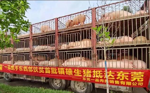 近日,東西部扶貧協(xié)作——農(nóng)產(chǎn)品(肉豬)交易項(xiàng)目首批鎮(zhèn)雄生豬運(yùn)達(dá)廣東東莞,這是昭通市鎮(zhèn)雄縣民泰農(nóng)業(yè)科技有限公司與東莞市一品肉類銷售有限公司生豬購(gòu)銷協(xié)作的首個(gè)訂