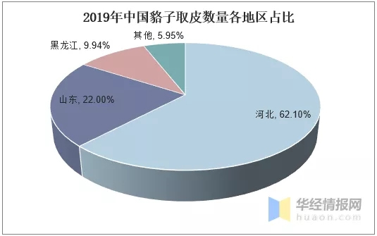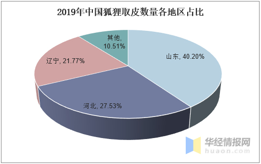 中國(guó)水貂、狐貍、貉子主要的養(yǎng)殖區(qū)位山東、遼寧、黑龍江、河北等地。根據(jù)數(shù)據(jù)顯示,山東是水貂的主要養(yǎng)殖區(qū),2019年山東水貂取皮數(shù)量占全國(guó)水貂取皮數(shù)量的56.79%;其次為遼寧和黑龍江,水貂取皮數(shù)量分別占據(jù)總?cè)∑?shù)量的26.51%、9.82%。