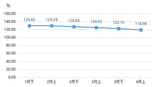 2022年4月上半月,裘皮產(chǎn)品價格總指數(shù)繼續(xù)走低,跌至118.98點,環(huán)比下跌2.56%,為三個月以來最低點。
