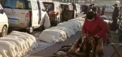 昨天是樂(lè)亭皮毛市場(chǎng)大集,市場(chǎng)上沒(méi)什么皮,市場(chǎng)門(mén)口有幾份干皮沒(méi)什么人看,有份二十來(lái)張的鮮皮質(zhì)量不算好,到散集也沒(méi)成交?,F(xiàn)在干板退出市場(chǎng),鮮皮還沒(méi)有正式開(kāi)始。下邊養(yǎng)殖場(chǎng)
