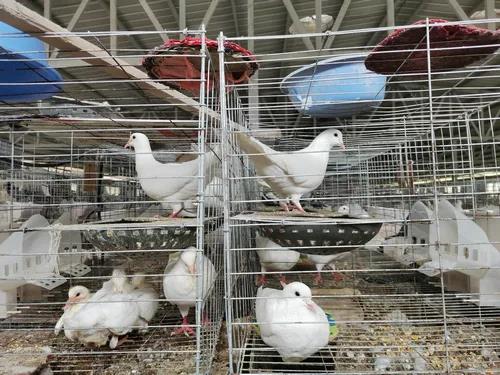 走進(jìn)養(yǎng)鴿場(chǎng),數(shù)萬只毛色鮮亮、神態(tài)俏麗的鴿子“咕咕”地叫著。筆者發(fā)現(xiàn),鴿場(chǎng)內(nèi)鴿子所在的籠舍被分為好幾層,每層分成若干個(gè)小籠子,每個(gè)籠子里基本上都是兩只鴿子住在一起,籠子里有一個(gè)小窩,有的窩內(nèi)是鴿蛋,有的窩內(nèi)則是剛孵化出來的小鴿子,猶如一個(gè)個(gè)的小家庭,好不壯觀。