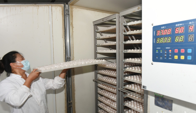 2021年7月20日,邯星農(nóng)業(yè)科技有限公司的員工將鴿子蛋放入箱體式孵化機(jī)。