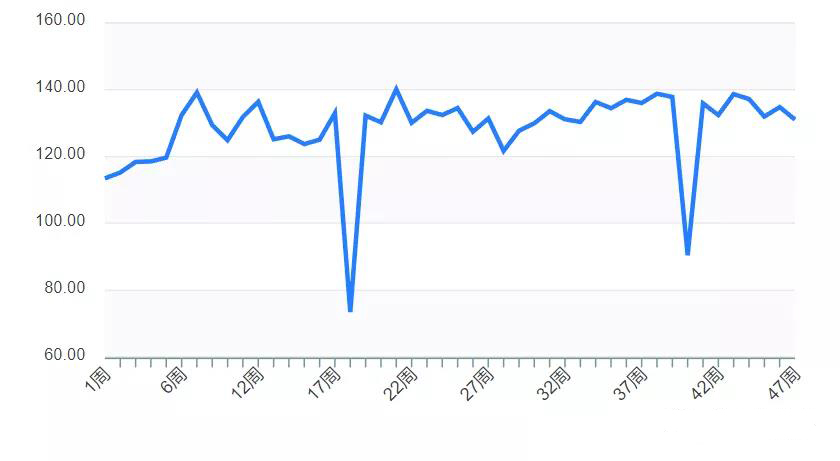 最近一周兔產(chǎn)業(yè)表現(xiàn)為131.59,與上周相比下降2.12%