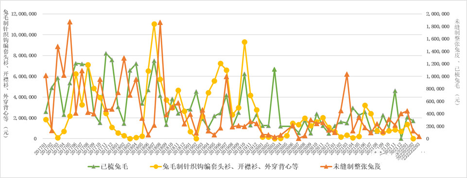 圖7 2017年1月-2022年3月兔產(chǎn)品進(jìn)口額走勢(shì)