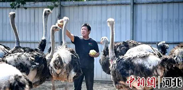 養(yǎng)殖戶(hù)王秀瑞給鴕鳥(niǎo)喂青菜。劉唯清攝 近日,在河北省灤南縣扒齒港鎮(zhèn)后營(yíng)村的一處鴕鳥(niǎo)養(yǎng)殖場(chǎng)內(nèi),30多只體高近兩米、平均體重超過(guò)100公斤的鴕鳥(niǎo)正悠閑踱步。養(yǎng)殖戶(hù)王秀瑞