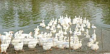 近日,天剛蒙蒙亮,河南省駐馬店市新蔡縣今是街道余莊村的田地里已然熱鬧非凡?! ≡谌f潤家庭農(nóng)場的散養(yǎng)基地,上萬只白鵝引頸高歌,健碩的獅頭鵝氣宇軒昂,皖浦大白鵝踱著方步,它